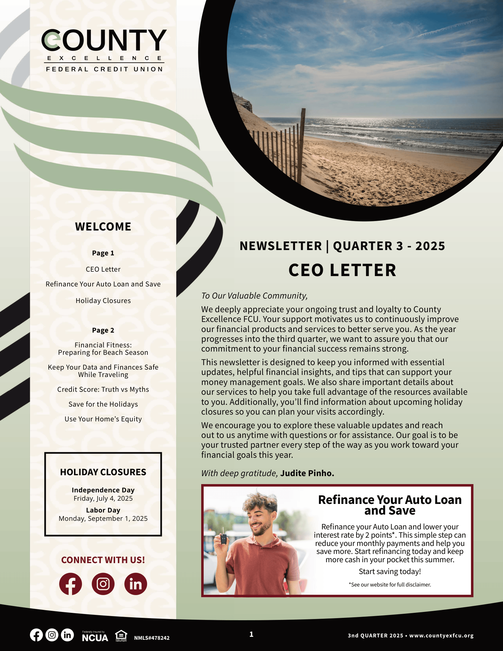 We provide links to third party websites, independent from County Excellence Federal Credit Union. These links are provided only as a convenience. We do not manage the content of those sites. The privacy and security policies of external websites will differ from those of County Excellence Federal Credit Union. Click CONTINUE to proceed or click the "X" to stay on this site.